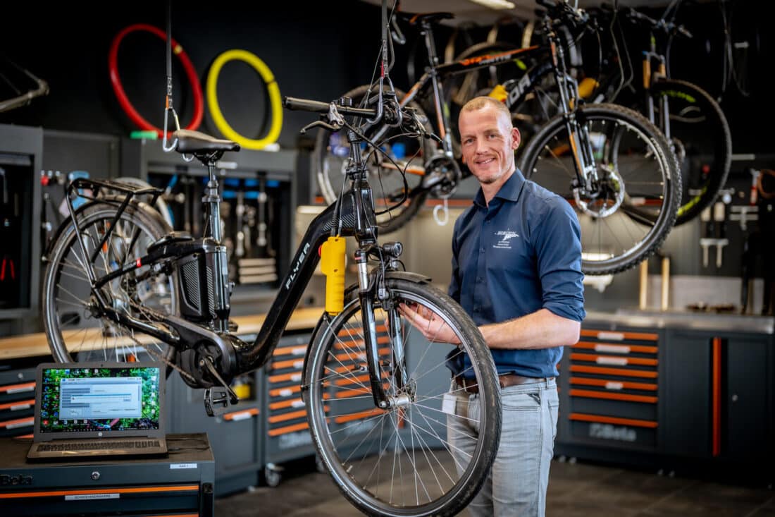 Docent Jan Bosman is enorm blij met het nieuwe lokaal, dat bij de ingang van de school in Heerhugowaard is gevestigd. ‘Het lokaal is een mooie blikvanger bij binnenkomst. Voorheen waren we onderdeel van de werkplaats motorvoertuigentechniek. Nu hebben we een eigen plek en willen we nog meer laten zien wat een mooi vak fietstechnicus is. Het personeelstekort in deze branche is groot, bedrijven zitten te springen om fietstechnici. Daarom heeft het bedrijfsleven ook mede geïnvesteerd in het lokaal om samen de fietstechnicus van de toekomst op te leiden.’